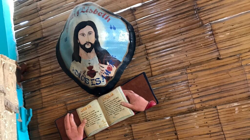Hay un hilo invisible que une a los dos muchachos de 13 años. Recorremos las callejuelas incendiadas por el sol hacia el mercado de Máncora, rumbo al mejor restaurante del pueblo (según un mototaxista), el de «Las gemelitas» Lizeth y Lisbeth. Nos tomamos una foto mirando los dos a un cuadro de Jesús. Que calor.